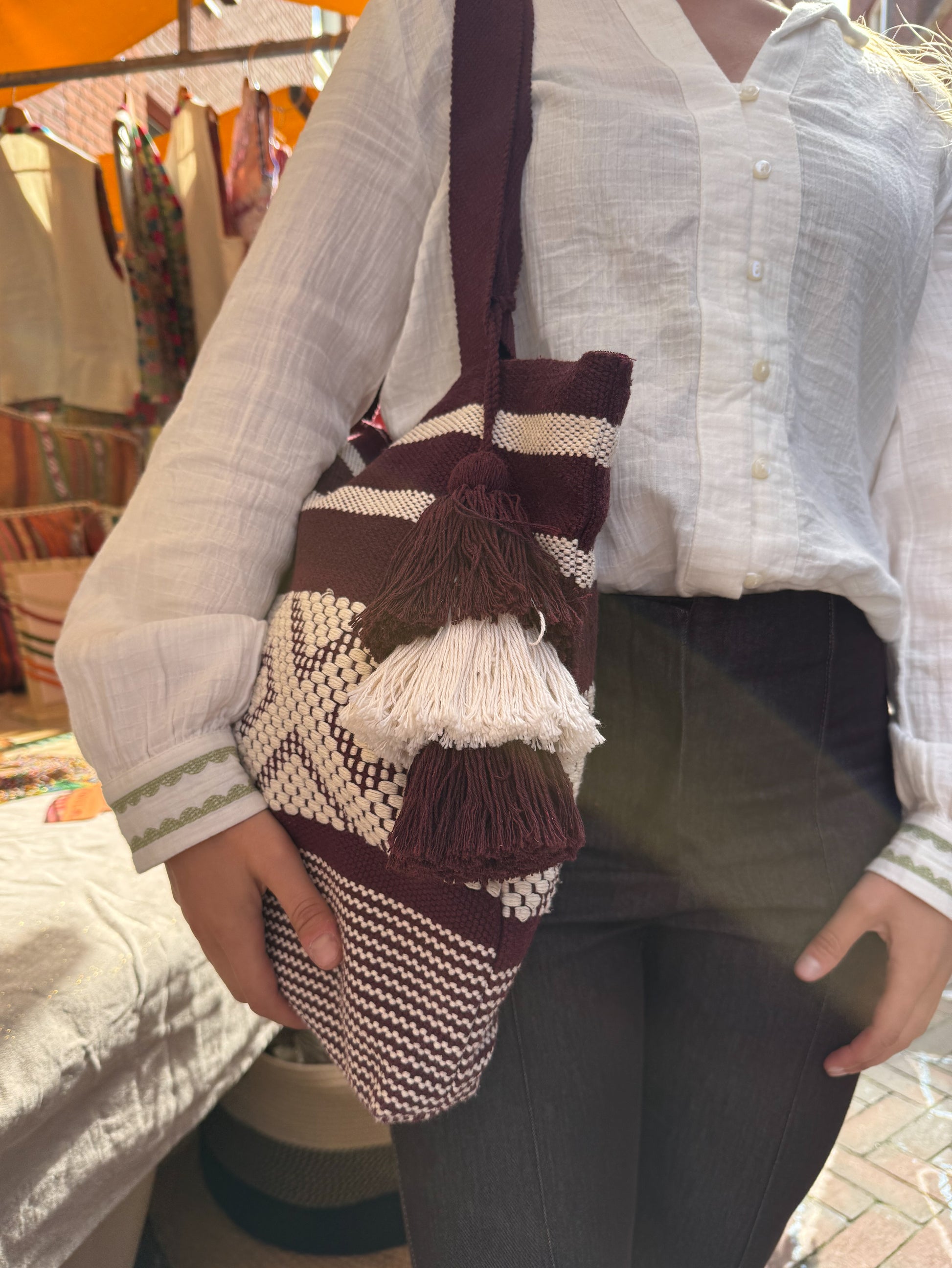 Onze Mexicaanse tassen worden met de hand gemaakt in Oaxaca, met een traditionele weeftechniek genaamd Telar de Cintura. Deze bijzondere techniek stamt uit de precolumbiaanse tijd en wordt al generaties lang doorgegeven. Tegenwoordig worden deze tassen nog maar in een paar regio’s van Mexico gemaakt, wat de tassen zeldzaam en uniek maakt.