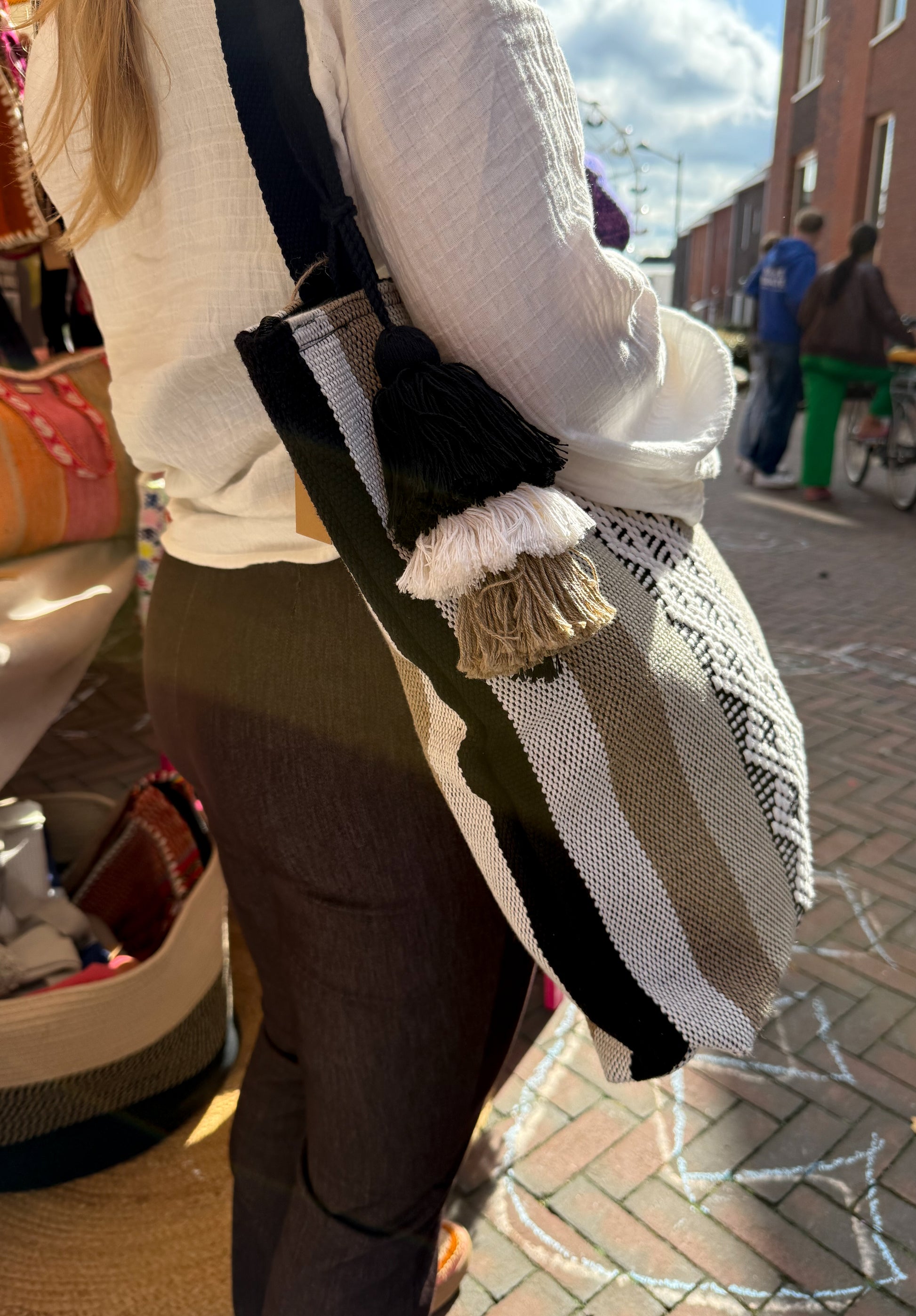 Onze Mexicaanse tassen worden met de hand gemaakt in Oaxaca, met een traditionele weeftechniek genaamd Telar de Cintura. Deze bijzondere techniek stamt uit de precolumbiaanse tijd en wordt al generaties lang doorgegeven. Tegenwoordig worden deze tassen nog maar in een paar regio’s van Mexico gemaakt, wat de tassen zeldzaam en uniek maakt.
